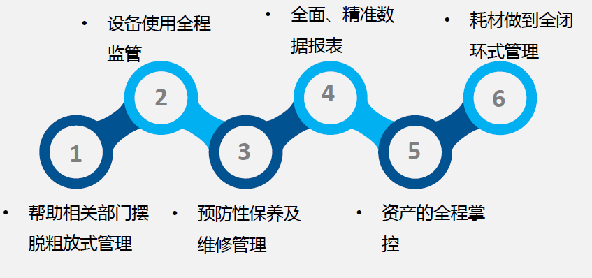 可按日期、科室、設備查詢和統計維護和維修記錄,查詢結果中至少包含設備名稱、維修費用、工時,同時支持匯兌和明細統計。
